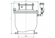 CARX復(fù)合式排氣閥閥體為圓形和橢圓形, 閥門內(nèi)件包括不銹鋼浮球、 杠桿及閥瓣。 本閥安裝在泵出口處或配水管線中, 用來排除集積在管中的空氣, 以提高管線及水泵的使用效率, 當(dāng)管內(nèi) 旦產(chǎn)生負(fù)壓時, 此閥迅速吸入外界空氣, 以防止管線因負(fù)壓而損壞。 當(dāng)管內(nèi)開始注水時, 閥瓣處在開啟的位置, 進行大量排氣, 當(dāng)空氣排完時, 閥內(nèi)充滿水, 浮球上升并帶動閥瓣關(guān)閉, 停止排氣, 當(dāng)管內(nèi)水正常輸送時, 如有少量空氣聚集在閥內(nèi)到相當(dāng)?shù)某潭龋?閥內(nèi)水位下降, 此時空氣由微量排氣閥或小孔排出。 當(dāng)水泵停止時, 管內(nèi)水流空或遇管內(nèi)產(chǎn)生負(fù)壓, 迅速吸入空氣, 確保管線安全。
