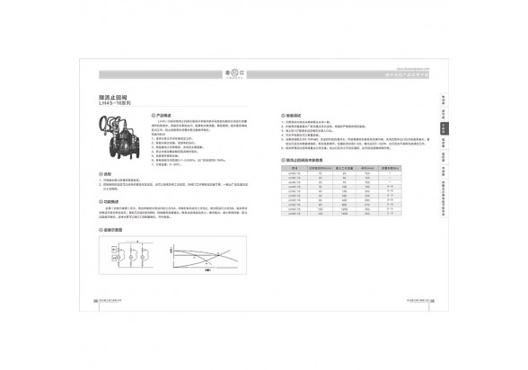 LH4 5-16系列限流止回閥主要用于多泵并聯(lián)采用改變臺數(shù)的方式進行流呈調節(jié)的系統(tǒng)中, 安裝在水泵的出口,起限制水泵流量,穩(wěn)定揚程。使水泵在高效區(qū)內工作,防止低揚程大流量水泵過載燒壞電機。